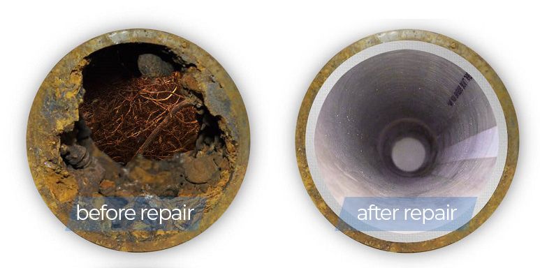 The following image of a pipe cutaway tells the story of what cured-in-place pipelining means. They illustrate a failing pipeline with root intrusion, corrosion or even breakage. The lower pipe illustration shows the same pipeline with a rehabilitated relined and sealed new pipe liner. This is the core of our business and could mean the difference between costly excavation and rebuilding of infrastructure versus a simple day of No-Excavation pipe repair solutions.